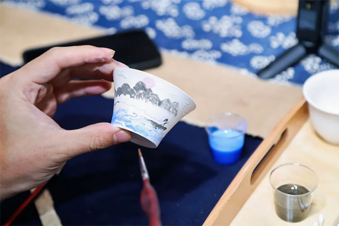 手作體驗環節中,嘉賓在陶藝師的指導下完成洗坯、畫圖、勾勒暈染等創作等流程,通過在傳統與當代技法碰撞中體驗“雙手賦予器物情感”。指尖與瓷面的互動,讓嘉賓直觀理解“材質溫度源于人文情感”,更是將“摸一摸,就是愛的表達”理念轉化為具象創作。